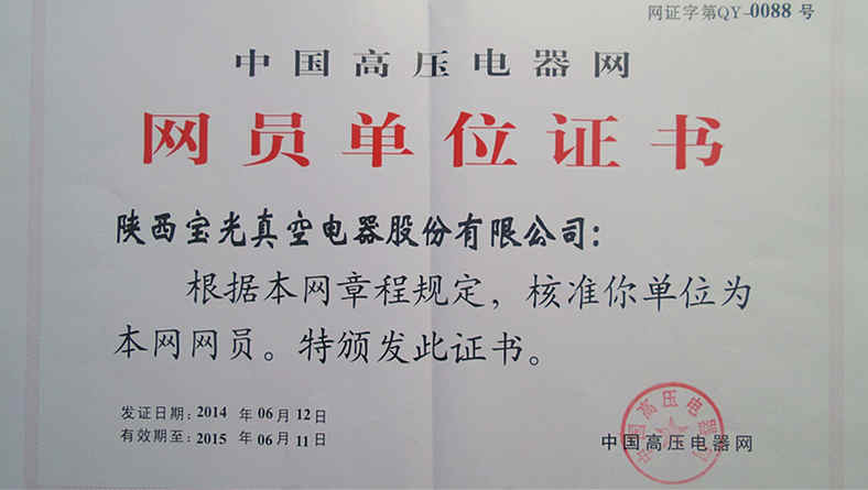 由西安高壓電器研究所主辦的中國(guó)高壓電器網(wǎng)經(jīng)過資格審查,于2014年6月份授予我公司為高壓電器會(huì)員單位。