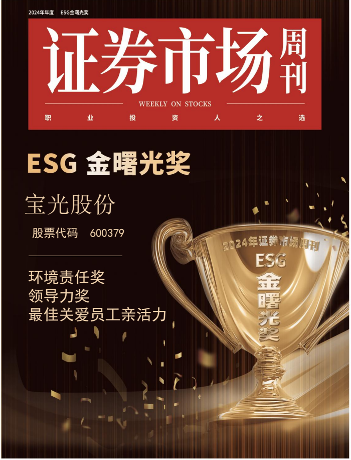 11月23日,2024《證券市場(chǎng)周刊》ESG“金曙光獎(jiǎng)”及“十大ESG領(lǐng)先企業(yè)榜單”評(píng)選結(jié)果揭曉。寶光股份憑借在ESG領(lǐng)域的卓越表現(xiàn),榮獲“金曙光環(huán)境責(zé)任獎(jiǎng)”“十大ESG領(lǐng)先企業(yè)—最佳關(guān)愛(ài)員工親活力獎(jiǎng)”,寶光股份黨委書(shū)記、董事長(zhǎng)謝洪濤榮獲“金曙光領(lǐng)導(dǎo)力獎(jiǎng)”。這是對(duì)寶光股份及企業(yè)“帶頭人”在ESG管理方面(非財(cái)務(wù)管理方面)高水平表現(xiàn)的高度贊譽(yù),也是對(duì)企業(yè)在ESG實(shí)踐方面持續(xù)努力成果的肯定。