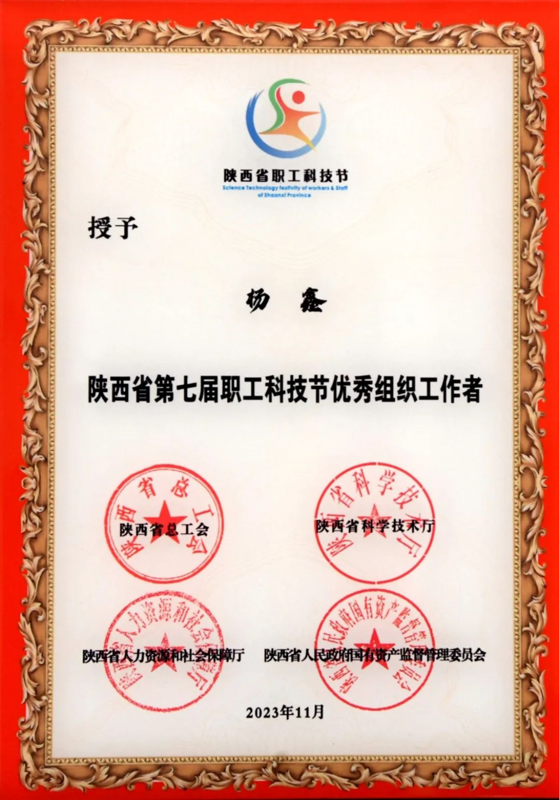 陜西省第七屆職工科技節(jié)優(yōu)秀組織工作者