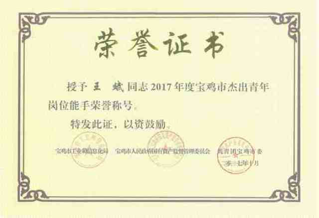 日前,零件事業(yè)部彈性元件產(chǎn)線(xiàn)成型組班組長(zhǎng)王斌,喜獲寶雞市“杰出青年崗位能手”榮譽(yù)稱(chēng)號(hào)。此次評(píng)選活動(dòng)是由共青團(tuán)寶雞市委、市工業(yè)和信息化局、市人民政府國(guó)有資產(chǎn)監(jiān)督管理委員會(huì)聯(lián)合組織,旨在引導(dǎo)和鼓勵(lì)廣大青年不斷提高職業(yè)技能,增強(qiáng)創(chuàng)業(yè)創(chuàng)新熱情,造就一大批品德優(yōu)良,技能精湛、勇于創(chuàng)新、成績(jī)突出的優(yōu)秀青年人才。據(jù)悉,2017年寶雞市共有10人獲得“杰出青年崗位能手”榮譽(yù)稱(chēng)號(hào)。