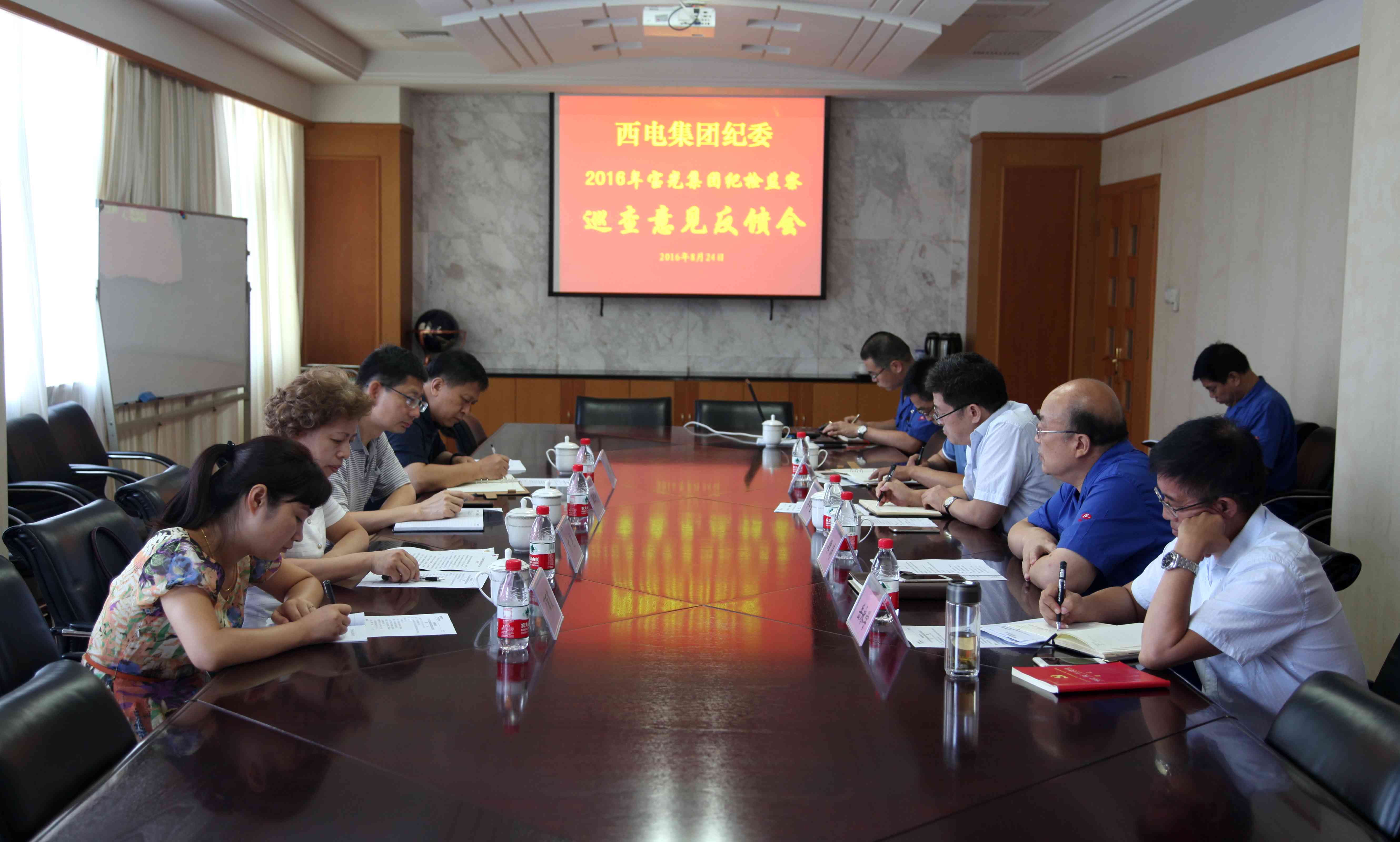 根據(jù)中國西電集團紀(jì)委監(jiān)察部的安排部署,8月24日上午,西電集團紀(jì)委第三紀(jì)檢監(jiān)察巡查組,來公司召開了紀(jì)檢監(jiān)察巡查工作意見反饋會,對西電集團第三紀(jì)檢監(jiān)察巡查組7月21、22日來寶光集團開展的紀(jì)檢監(jiān)察巡查結(jié)果進行了反饋。西電集團紀(jì)委副書記、監(jiān)察部部長李江平,西電集團紀(jì)檢監(jiān)察第三巡查組組長方艷,西電集團第五紀(jì)檢監(jiān)察室主任胡耿民,西電集團紀(jì)檢監(jiān)察第三巡查組成員萬麗霞,寶光集團班子成員李軍望、雒濤、岳永學(xué)、李波參加了會議。會議由寶光集團黨委書記雒濤同志主持。