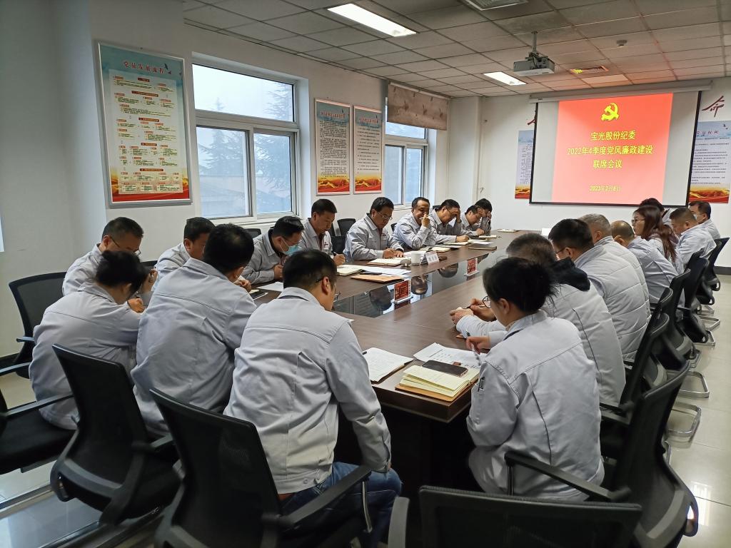 2月8日上午,寶光股份黨委召開了黨支部書記季度工作例會、黨風(fēng)廉政建設(shè)聯(lián)席會議。會上,集中學(xué)習(xí)了習(xí)近平總書記發(fā)表的署名文章《為實現(xiàn)黨的二十大確定的目標任務(wù)而團結(jié)奮斗》以及寶光集團黨委《關(guān)于召開2022年度基層黨支部組織生活會及開展民主評議黨員工作的通知》;通報了2022年四季度基層黨支部黨建工作督查情況和基層黨支部考核結(jié)果;圍繞2023年黨建工作提升開展了座談交流。寶光股份黨委委員、紀委書記姚書勤主持會議并講話,黨支部書記及黨委工作部門負責(zé)人參加了會議。