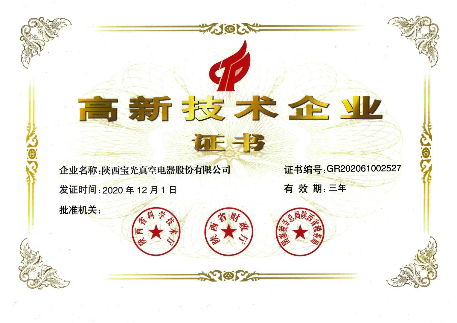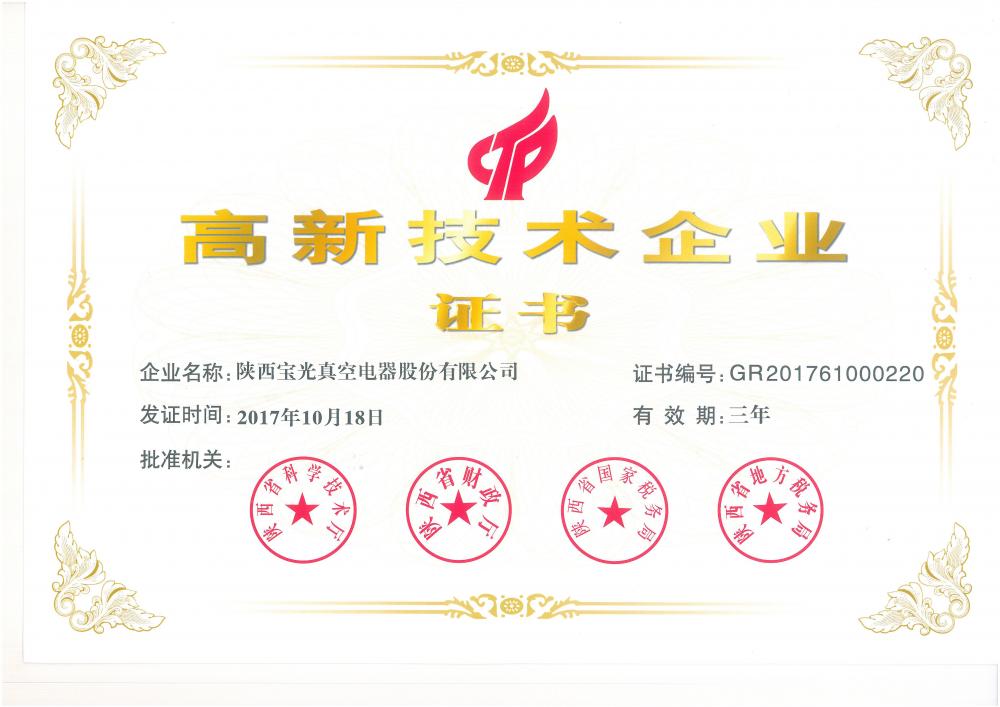 - 寶光牌真空滅弧室被授予陜西省名牌產(chǎn)品稱號