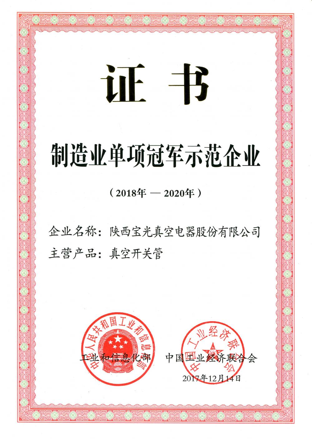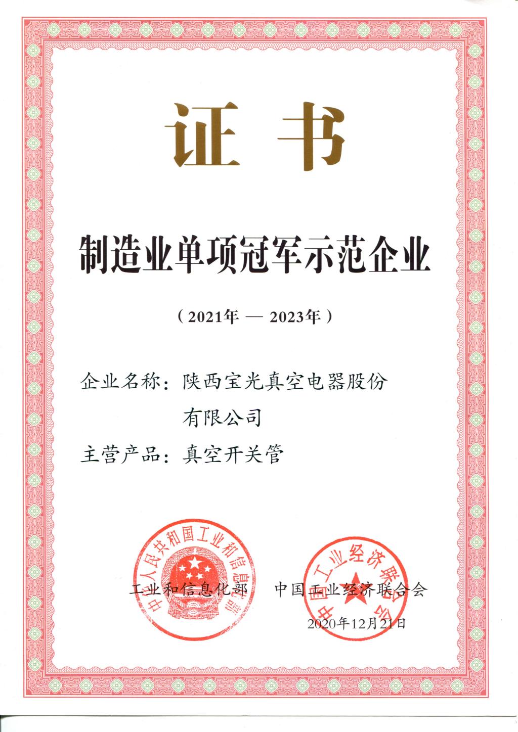 - 2024年榮獲制造業(yè)單項冠軍企業(yè)