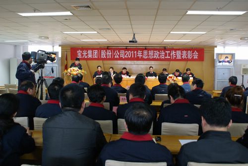 寶光集團2011年思想政治暨表彰會于3月31日在科技大樓二層會議室隆重召開。在主席臺上就座的領(lǐng)導(dǎo)有:李明鑫、李軍望、岳永學(xué)、張軍、蔣華明、朱安珂、胡唯、付宗喜。全體中層干部、各分會主席、團支部書記,受表彰的先進集體和先進個人代表參加了會議。