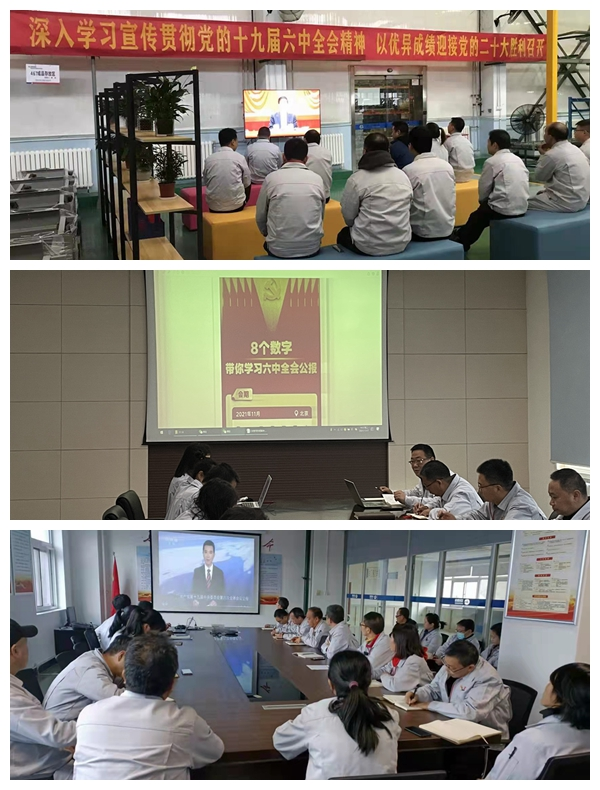 公司黨委要求各黨支部緊抓契機(jī)、提高認(rèn)識(shí),迅速行動(dòng)起來,進(jìn)一步增強(qiáng)學(xué)習(xí)貫徹十九屆六中全會(huì)精神的自覺性和主動(dòng)性,以迅速及時(shí)、扎實(shí)有效的舉措,推動(dòng)形成學(xué)習(xí)貫徹黨的十九屆六中全會(huì)精神的熱潮;要求黨委班子成員、各黨支部書記以及及黨委部門負(fù)責(zé)人要帶頭學(xué)習(xí)、并撰寫學(xué)習(xí)心得;要求各黨支部精心組織,通過三會(huì)一課、班前會(huì)、晨會(huì)等多種形式,深入學(xué)習(xí)貫徹黨的十九屆六中全會(huì)精神會(huì)議,推動(dòng)全會(huì)精神進(jìn)車間、進(jìn)班組、進(jìn)基層,領(lǐng)會(huì)全會(huì)精神、激發(fā)干事創(chuàng)業(yè)激情。