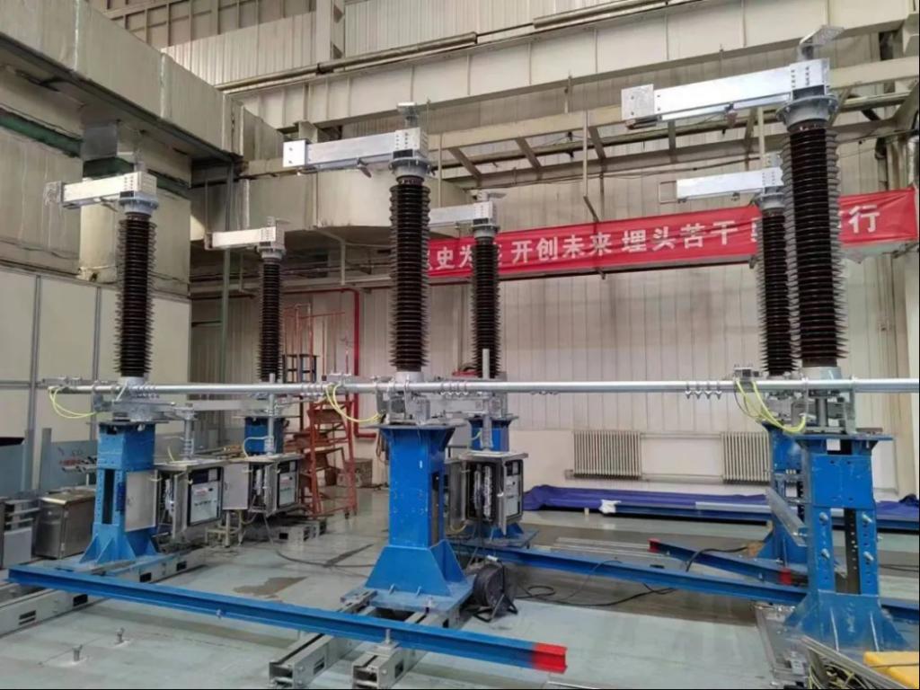 由西開電氣為烏海敖瑞500千伏輸變電項(xiàng)目安裝的7個(gè)間隔550kVGIS和7個(gè)間隔220kV HGIS一次性通過工頻耐壓試驗(yàn)。烏海敖瑞500千伏輸變電工程位于內(nèi)蒙古自治區(qū)巴彥淖爾市烏拉特后旗獲各琦蘇木境內(nèi),是內(nèi)蒙古自治區(qū)首批沙、戈、荒新能源大基地重點(diǎn)建設(shè)項(xiàng)目。為確保優(yōu)質(zhì)高效完成該項(xiàng)目安裝任務(wù),項(xiàng)目團(tuán)隊(duì)積極溝通施工方,制定詳細(xì)切實(shí)可行的安裝計(jì)劃,動(dòng)態(tài)實(shí)施全過程質(zhì)量監(jiān)督和預(yù)控管理,積極克服蒙西地區(qū)低溫寒冷風(fēng)沙大的極端天氣,主動(dòng)發(fā)揚(yáng)“特別能吃苦、特別能戰(zhàn)斗、特別能奉獻(xiàn)”的優(yōu)良傳統(tǒng),全力搶抓施工進(jìn)度,助力敖瑞500千伏輸變電工程順利投產(chǎn)。